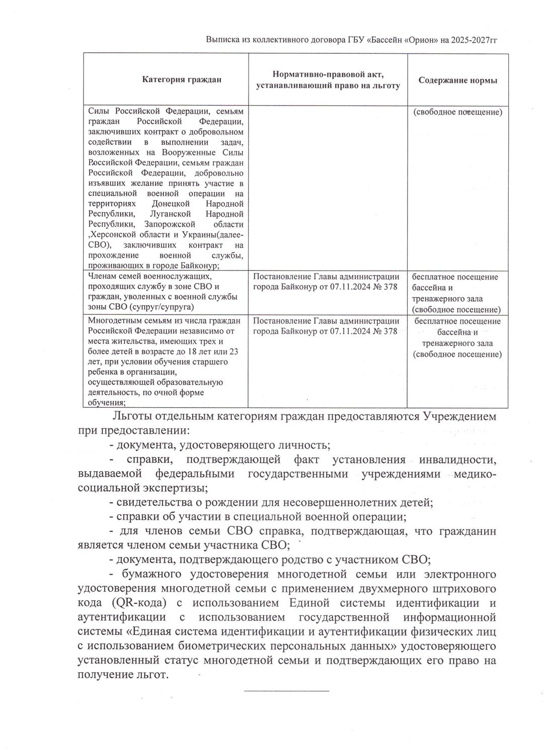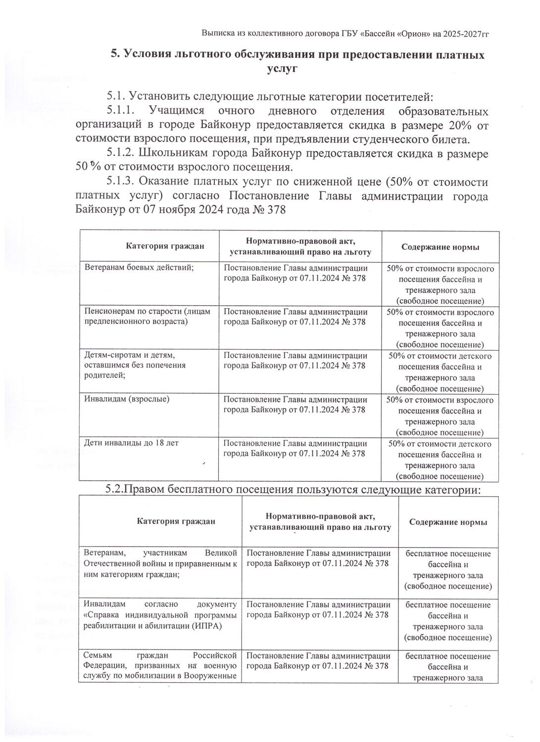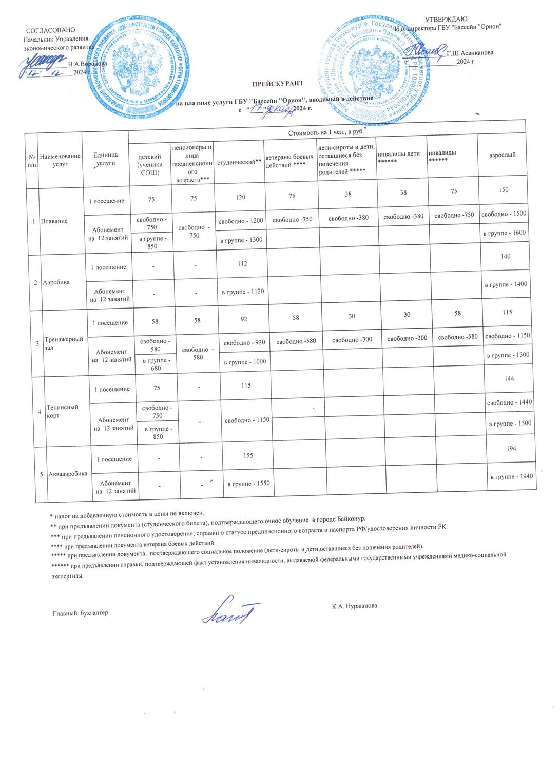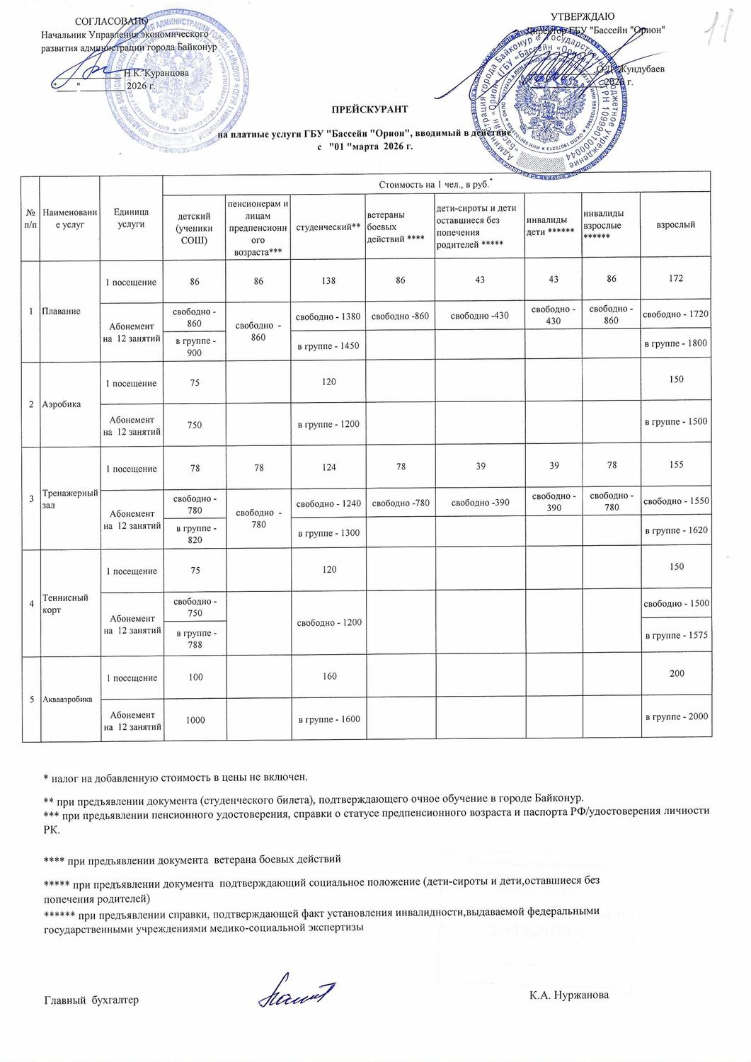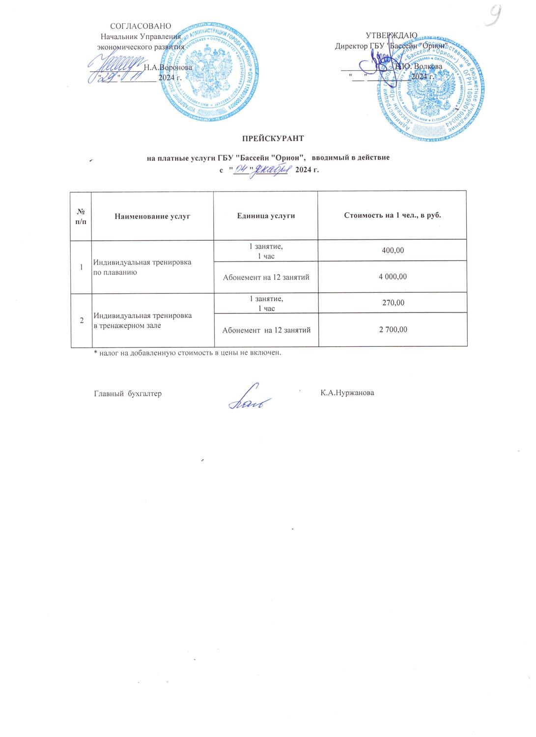 Прейскурант на платные услуги ГБУ "Бассейн"Орион"